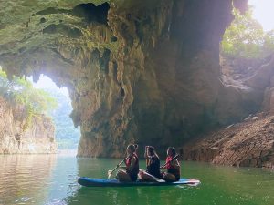 Nguom Ngao Cave (Sound of Tiger Cave). You will be extremely impressed by the beauty of stalactites. Explore around the cave and take pictures.